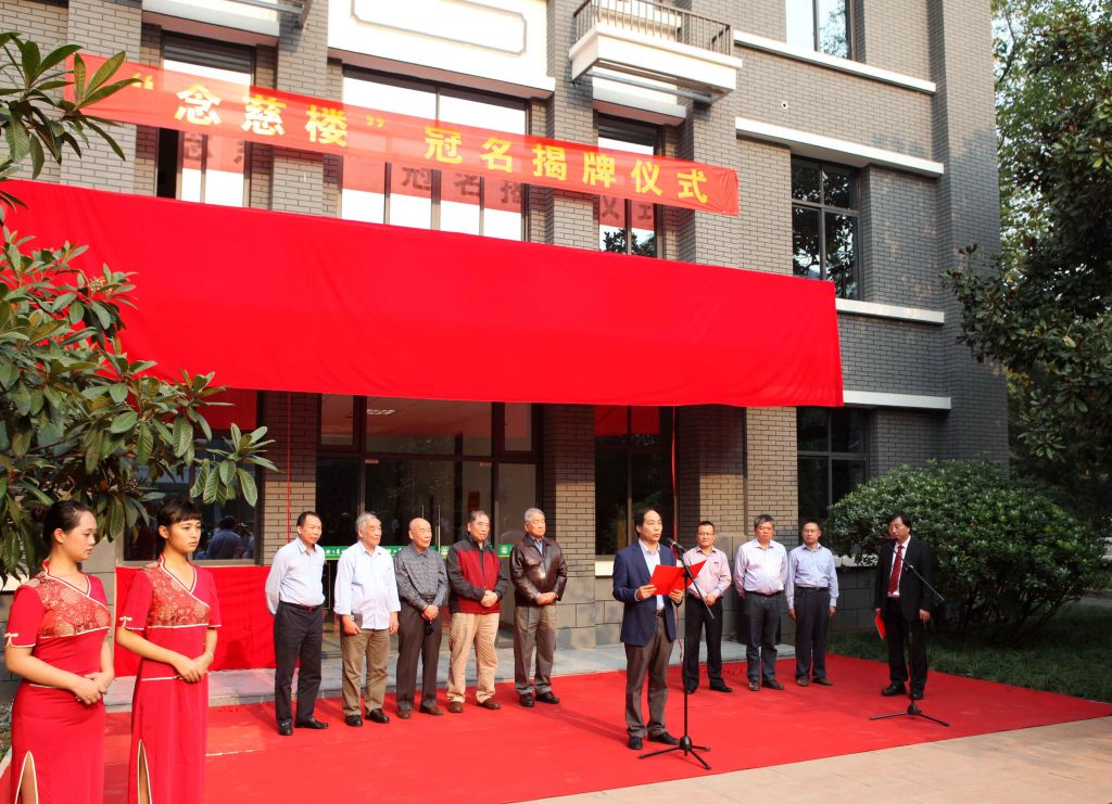 教學(xué)樓修繕好以后,根據(jù)陳每文老先生的意愿,學(xué)校將修繕后的東大樓冠名為“念慈樓”,并于當(dāng)年10月16日舉行“念慈樓”揭牌儀式,陳每文先生親作《念慈樓記》銘刻于墻體。原來(lái),陳每文先生2歲喪母,由其伯母王三妹在祖宅養(yǎng)大成人,“念慈樓”即表達(dá)其紀(jì)念慈母、不忘養(yǎng)母養(yǎng)育之恩。