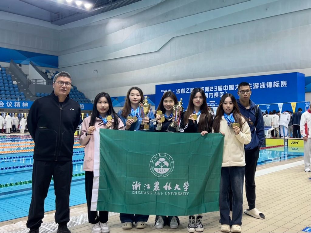 10月13日-17日,第23屆中國大學生游泳錦標賽(南方賽區)在貴州省遵義市奧體中心游泳館舉行。我校獲得了2金3銀2銅,并獲得女子團體總分第三名,也是我校參加全國比賽以來首次進入團體前三名。
