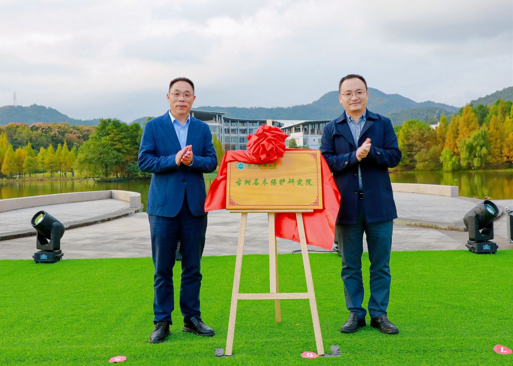 儀式上,浙江農林大學古樹名木保護研究院揭牌成立。研究院成立后,將致力于古樹名木的科學研究、教育普及和管理養護,助力生物多樣性保護,迎接第五屆世界生物圈保護區大會在浙江省杭州召開。儀式上還發布了生態成績單與生態研學地圖,對植物達人、生態征文、節能衛士、節能寢室等進行了表彰。長期以來,學校深入貫徹“無生態 不農林”的育人理念,將生態化的辦學思想、教育理念、治理方式貫穿人才培養全過程,建立了“生態青年成績單”制度,設立了生態積分和生態勛章。