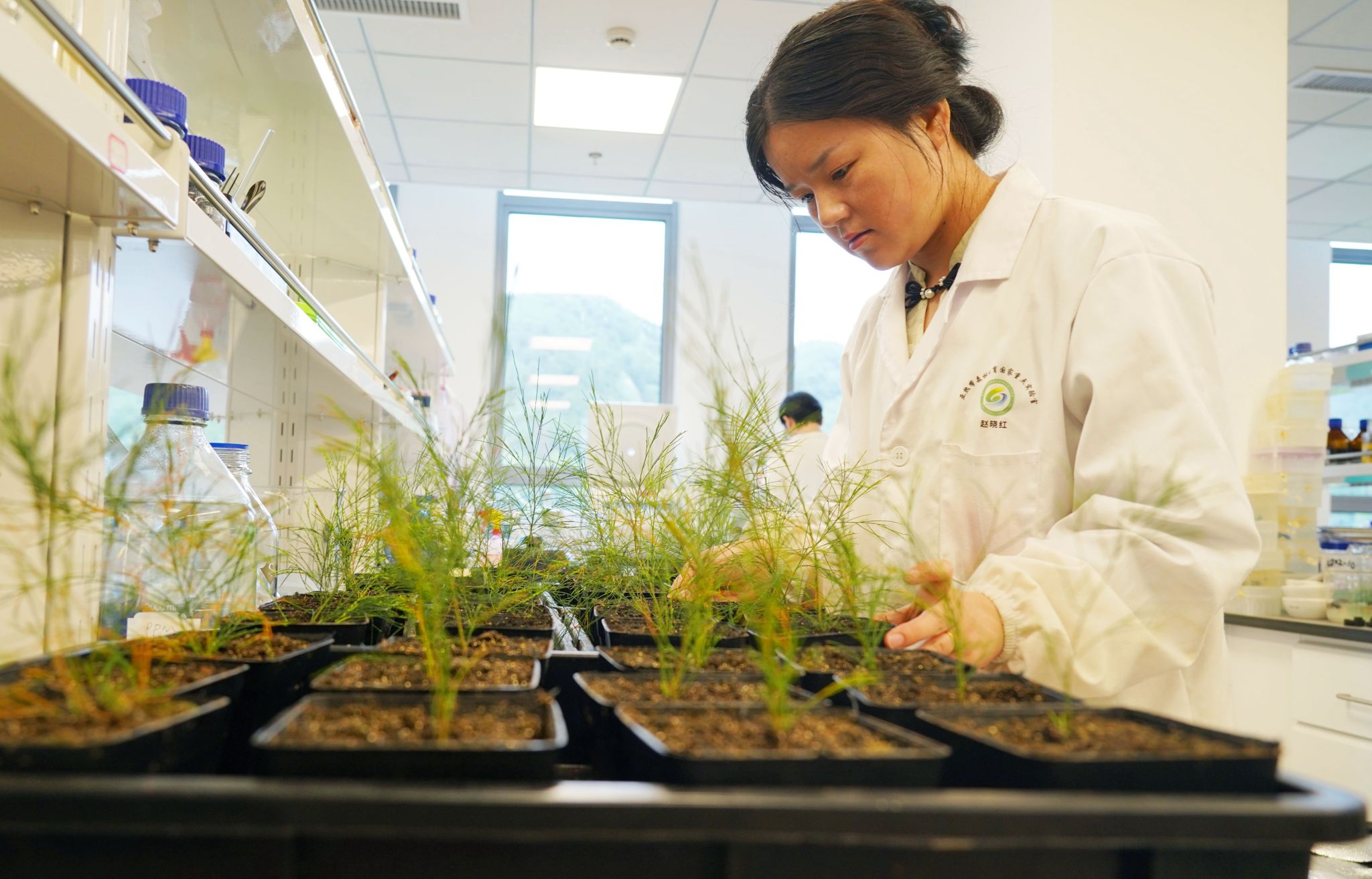 浙江農(nóng)林大學(xué)亞熱帶森林培育國(guó)家實(shí)驗(yàn)室里,學(xué)生正在做實(shí)驗(yàn)。