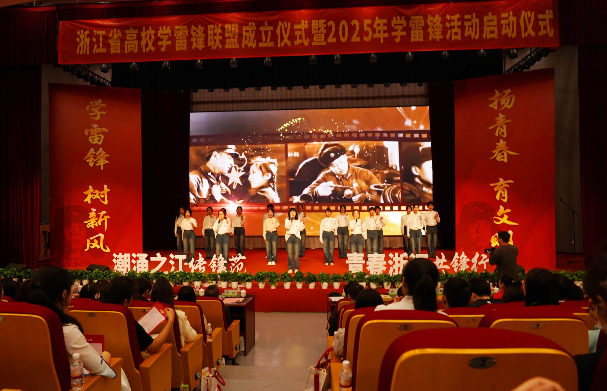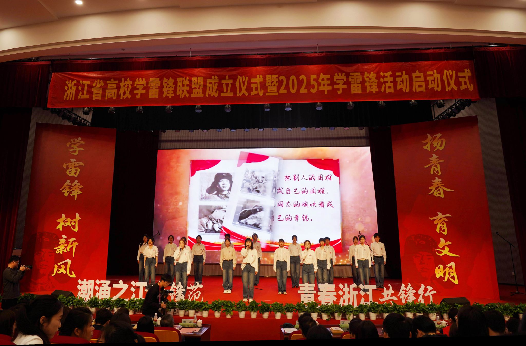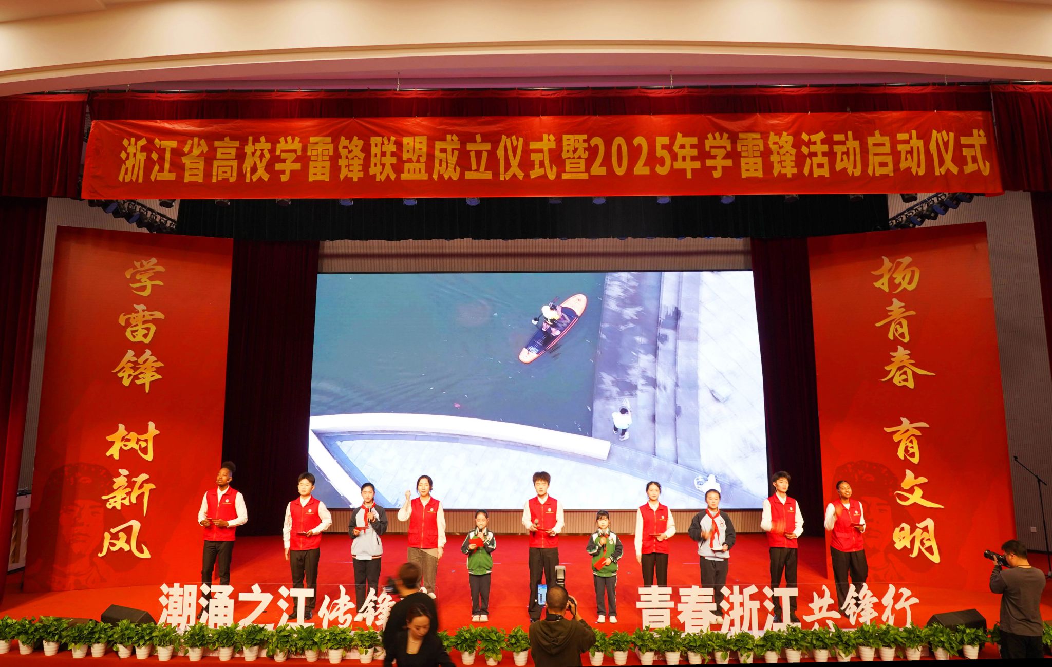 儀式上,浙江省高校學雷鋒聯盟揭牌,浙江省高校學雷鋒志愿服務總隊授旗,第一批聯盟成員單位授牌,志愿者代表宣讀倡議書。當天,還舉行了聯盟理事單位授牌儀式、浙江省高校學雷鋒聯盟旗幟移交儀式,各代表審議通過了浙江省高校學雷鋒聯盟章程。浙江農林大學、溫州醫科大學、杭州電子科技大學等10所高校當選浙江省高校學雷鋒聯盟首批理事單位。