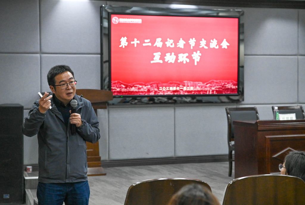 11月2日,浙江農林大學第十二屆記者節交流會在東湖校區圖書館第二報告廳舉行。臨安融媒體中心綜合編輯部主任王建輝應邀作新聞培訓講座。