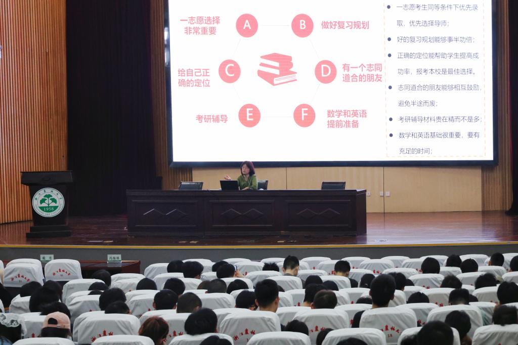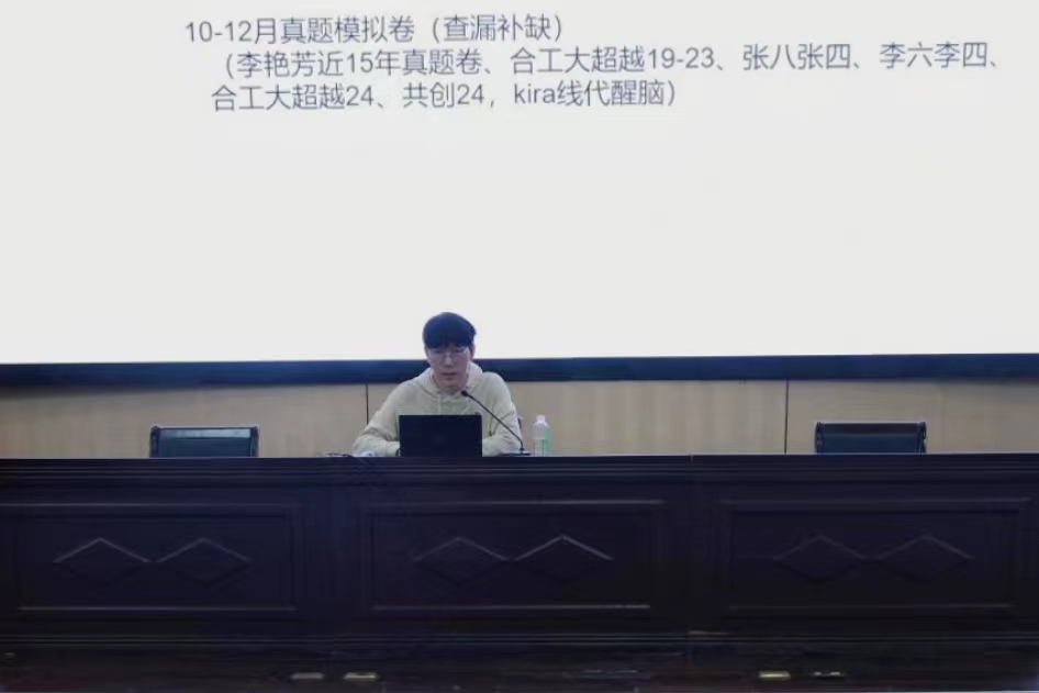 碩士學位點負責人就今年的考研形勢進行了分析,重點介紹了學院碩士學位點的建設情況以及近幾年的考研情況,鼓勵學生要清晰定位,重視一志愿的選擇,做好復習規(guī)劃。