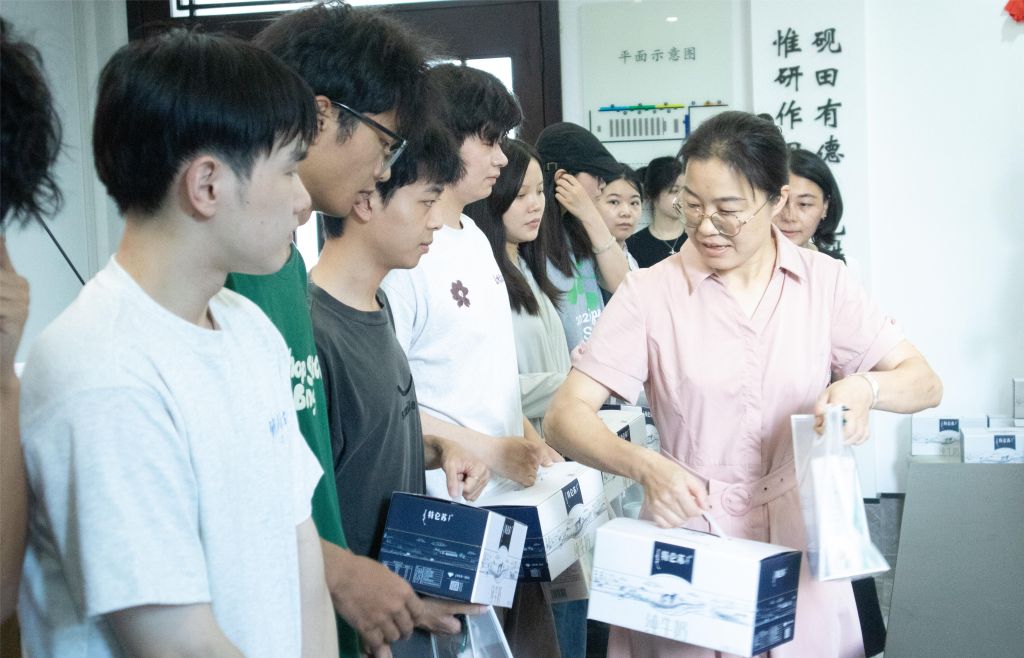 學院領(lǐng)導(dǎo)為留校同學們送上夏日清涼禮包,并鼓勵同學們?nèi)σ愿啊?/p>