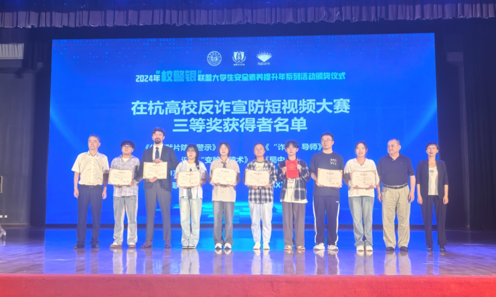 本次大賽為2024年“校警銀”聯盟大學生安全素養提升年系列活動之一,由杭州市公安局、聯盟成員單位等聯合主辦,共收到來自三十五所高校選送的作品三百多件。經過評委評審和網絡投票,評選出一等獎1個,二等獎4個,三等獎8個,優秀獎和參與獎若干。