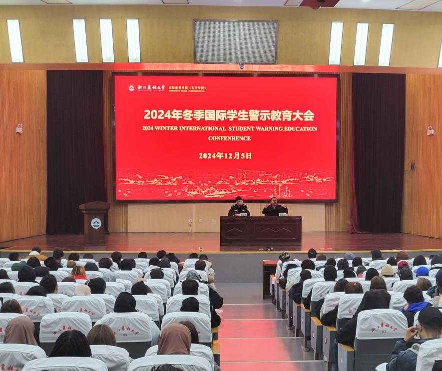 12月5日,國教學院舉行冬季國際學生警示教育大會,邀請杭州市公安局臨安區分局警官參加并做案例警示講座。會議由院長趙有華主持,學院相關負責人、全體輔導員及國際學生參加了此次會議。