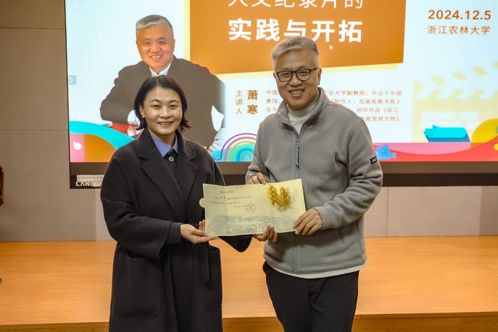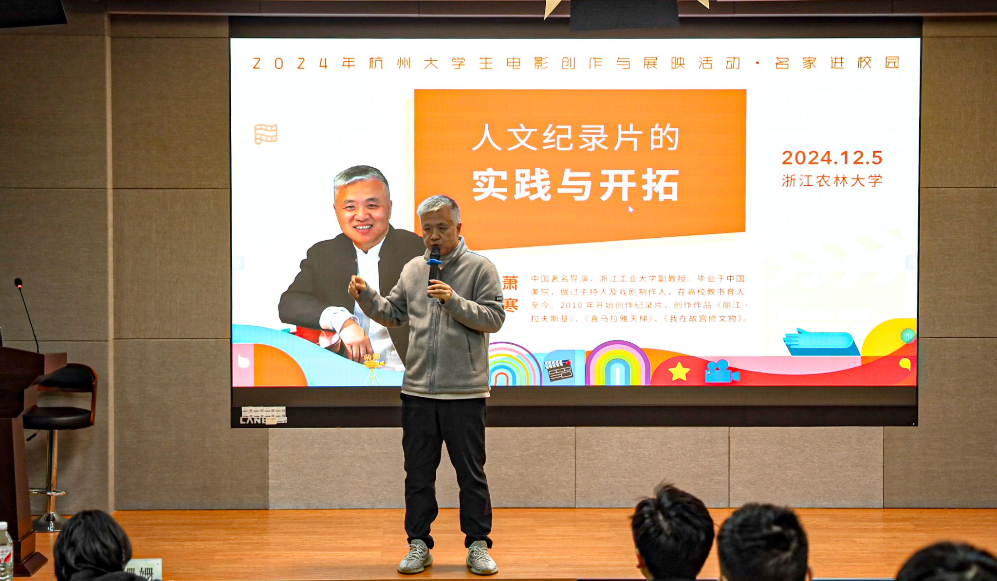 講座中,蕭寒從個人經(jīng)歷出發(fā),分享了自己拍紀錄片的契機,并以自己的作品《麗江拉夫斯基》《我在故宮修文物》《一百年很長嗎》為例,與同學們探討了紀錄片拍攝的創(chuàng)作愿景及對主題選擇。他提到,拍攝作品的過程中要學會平衡“讓更多人看到”和“作者表達”的關(guān)系;要挖掘能夠引發(fā)公眾共鳴、促進社會思考與進步的主題,再通過鏡頭語言,創(chuàng)作出既具有深刻內(nèi)涵又不失觀賞性的作品;在信息爆炸的時代,尤其要學會堅持自己的獨立思考與判斷,時刻保持清醒,不隨波逐流。