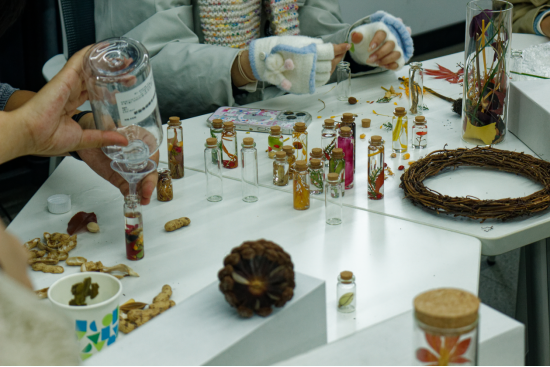 活動(dòng)精心特制的感官瓶成為亮點(diǎn)。瓶?jī)?nèi)元素豐富多樣,巧妙地觸發(fā)了視覺(jué)、聽(tīng)覺(jué)、觸覺(jué)等多元感官體驗(yàn)。同學(xué)們將各自撿拾的秋冬元素悉心置入瓶中,賦予其獨(dú)特靈魂。
