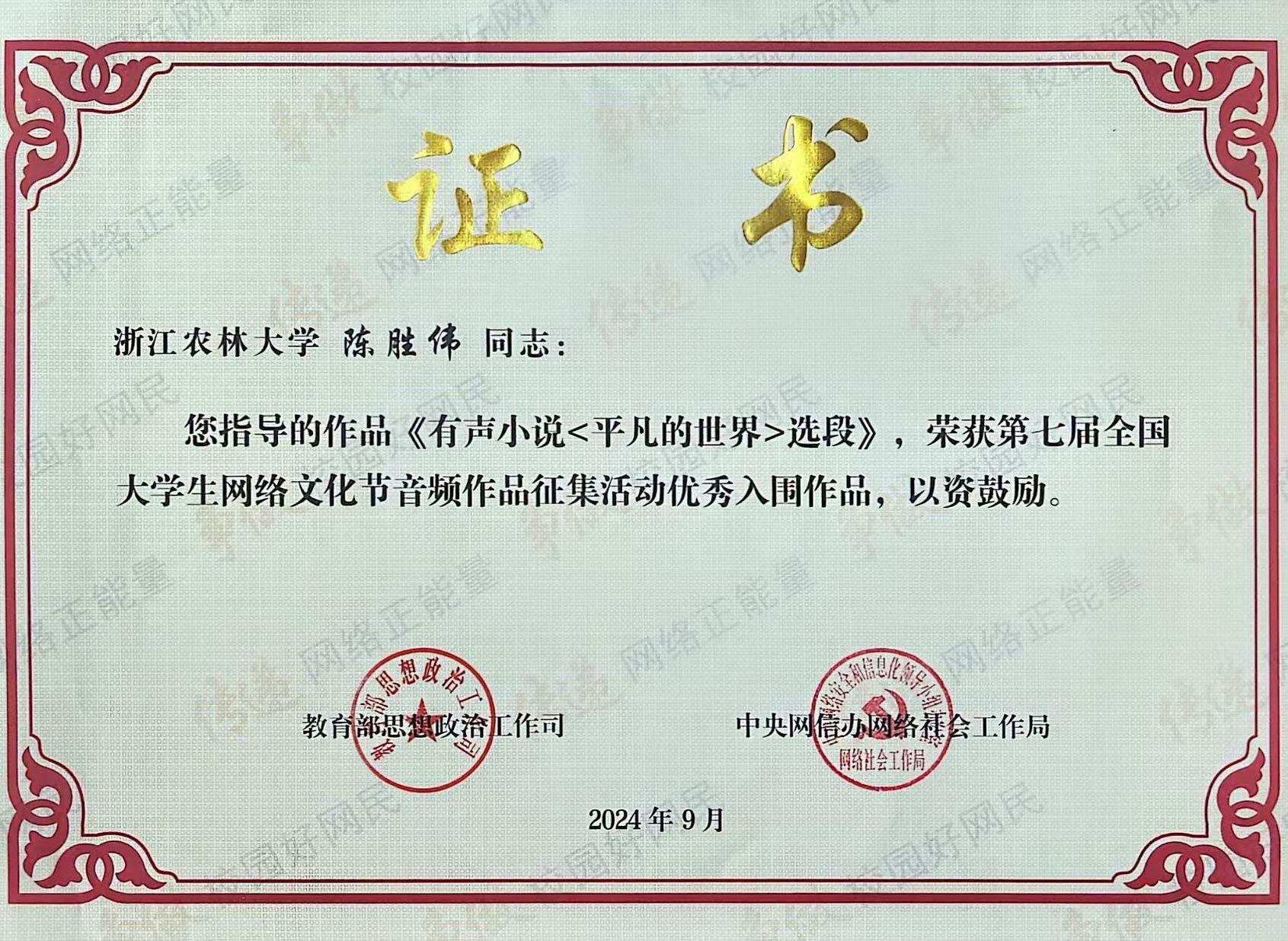 此次《有聲小說<平凡的世界>選段》獲獎,展示了學校在網絡思政育人方面的積極探索與實踐成效。通過引導師生積極參與各類網絡文化作品創作,提升青年網絡文明素養,讓網絡思政的“傾聽者”轉變為傳播網絡正能量的“發聲者”。下一步,學校將持續聚焦立德樹人根本任務,拓展網絡育人載體、形式和空間,結合人工智能等新技術,繼續深耕內容創新,全方位筑牢網絡思政教育陣地,提升網絡思政工作實效。