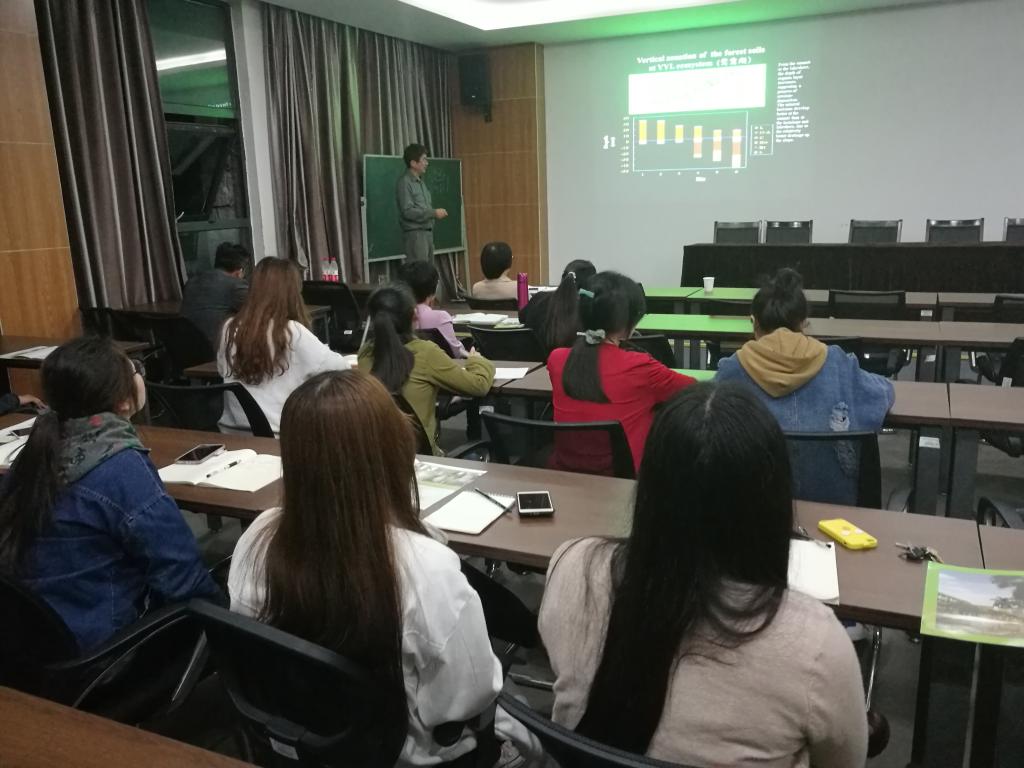 4月7日晚,臺灣中央研究院生物多樣性中心研究員邱志郁教授應環資學院邀請,在碳匯樓101會議室作了題為“森林演替對土壤有機物和微生物群落組成的影響”的學術報告。相關專業的老師和學生參加了此次報告會。