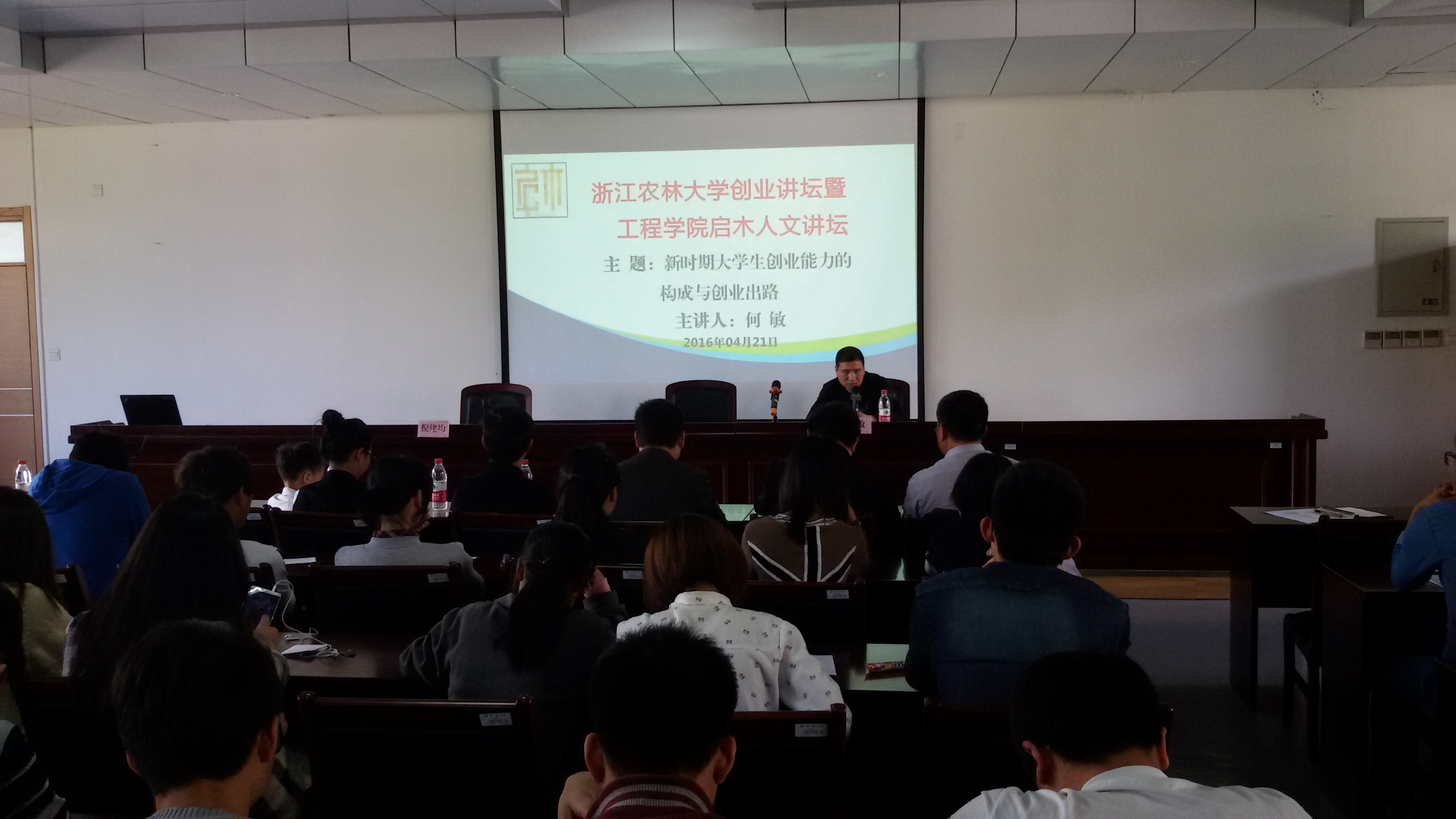 近日,我校2016年首期創業論壇在國家工程中心報告廳開講,黃山東仁新材料股份有限公司董事長何敏應邀作報告。創業講壇由工程學院書記倪建均主持,創業管理處處長朱永法應邀出席了講壇,全校師生200余人聆聽了何敏的精彩創業歷程。