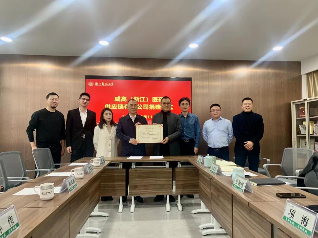 12月11日,威高(浙江)醫藥供應鏈有限公司捐贈儀式在環資院、碳中和學院黨員之家舉行。