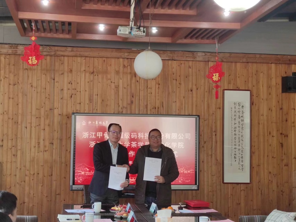 會上,茶學院和浙江甲骨文超級碼科技股份有限公司簽訂了捐贈協議和戰略合作協議,并舉行聘任儀式。