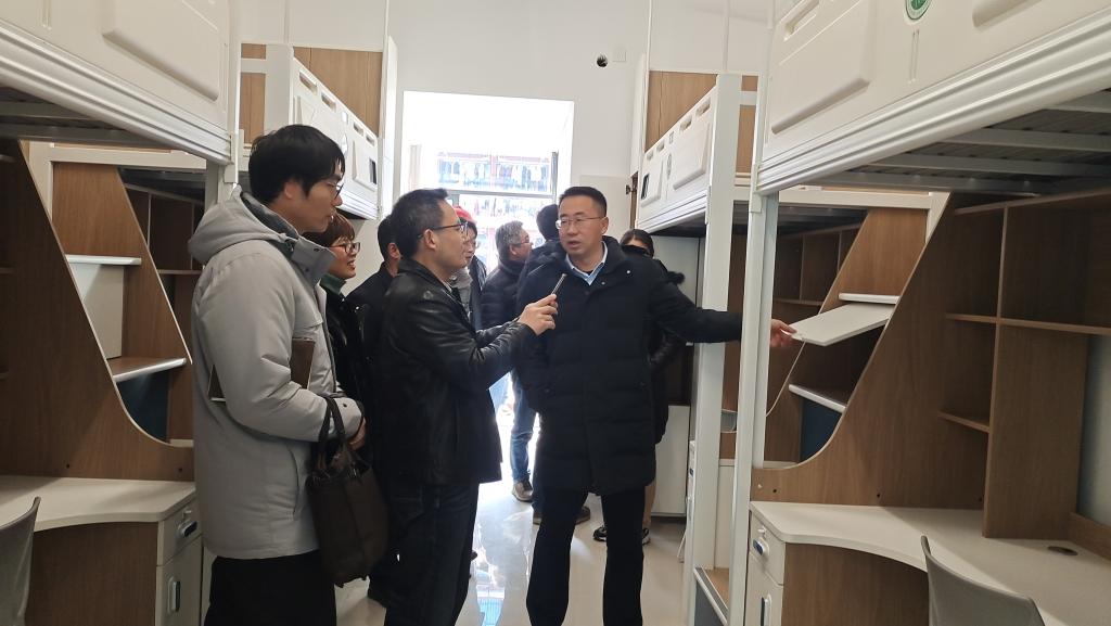 基建處負(fù)責(zé)人對(duì)蔣疊峰一行來(lái)校交流表示歡迎,并介紹了我校基本建設(shè)概況,在建工程項(xiàng)目等情況,分享了我校學(xué)生宿舍擴(kuò)建工程項(xiàng)目建設(shè)的相關(guān)做法。