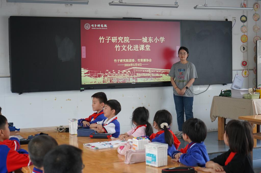 “咬定青山不放松,立根原在破巖中……”竹文化知識的講授伴隨著孩子們的朗朗書聲從城東小學(xué)的教室飄出,一堂生動有趣的竹文化課正在這里進行。5月9日,竹子研究院團委、竹資源協(xié)會走進臨安區(qū)城東小學(xué),開展“竹文化進課堂之竹類知識知多少”活動,覆蓋青少年學(xué)生40余人。